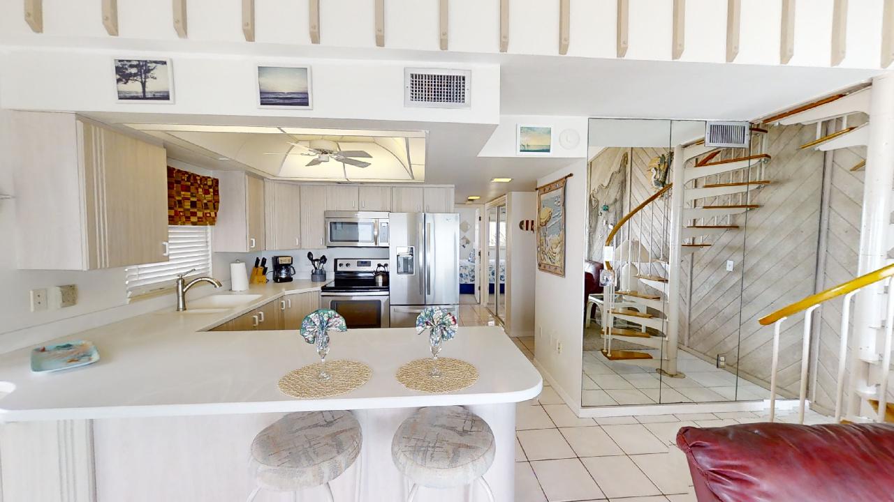 This unit is a 2 bedroom, 2 bath, with an open floor plan. It is fully furnished and has a completely equipped kitchen.